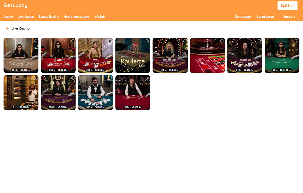- Se eksempler fra Get Lucky live dealer sektion